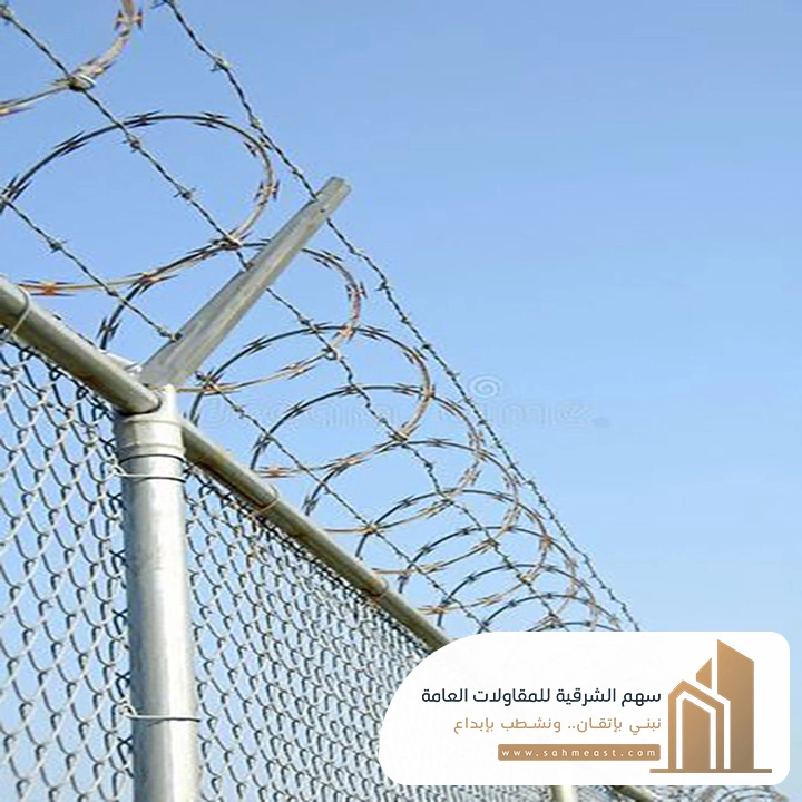 | 1- | الأسلاك الشائكة | يتم تركيبها في أعلى السياج لمنع التسلل. |