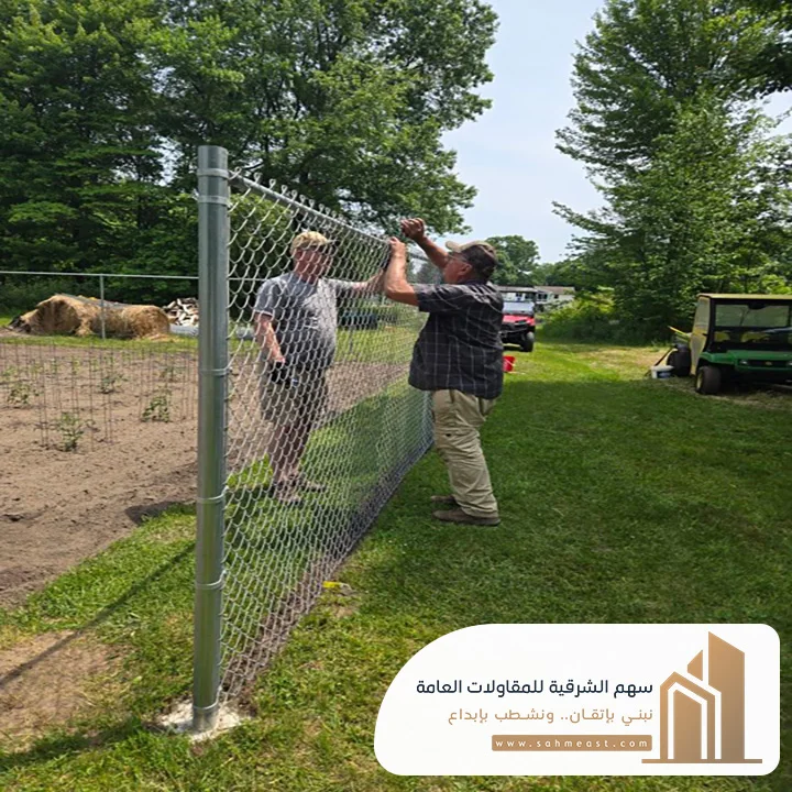 تركيب شبك السياج وشده بأدوات خاصة لمنع الارتخاء مع مرور الوقت.